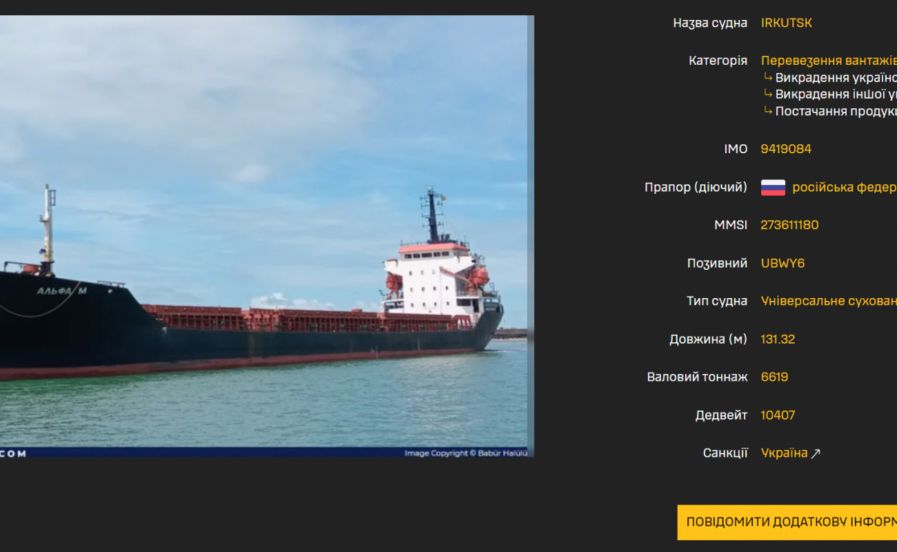 “The consignment of wheat removed by the Alfa M from occupied Mariupol effectively has the status of contraband,” said Kateryna Yaresko, a journalist at the SeaKrime project of Ukraine’s Myrotvorets Centre. “Such systematic disinformation, conducted at state level in Russia, undermines the economic security of participants in international trade.”